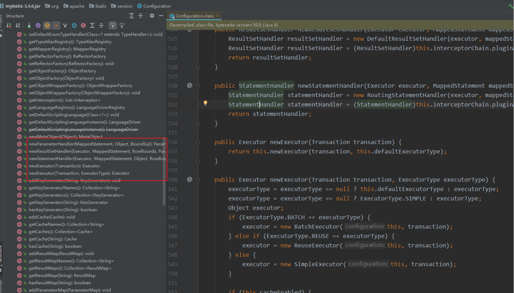 Executor才是真正完成数据库交互, 增删改查的核心, 但是和我们前面所讲的: 一切操作的底层, 对于数据库这个层面上 来讲, 都应该是JDBC, 现在Mybatis做了这项工作之后, 他怎么和JDBC建立联系呢? 那就由后面的对象配合他来完成