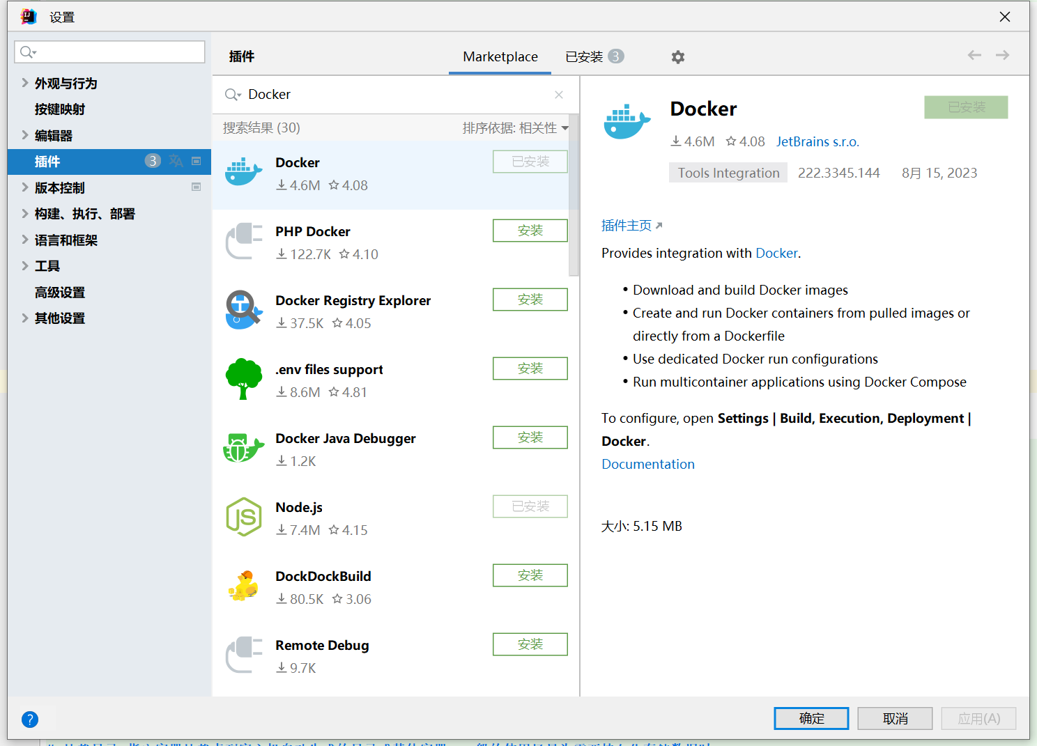 File->Settings->Plugins->Marketplace->搜索docker->Docker安装